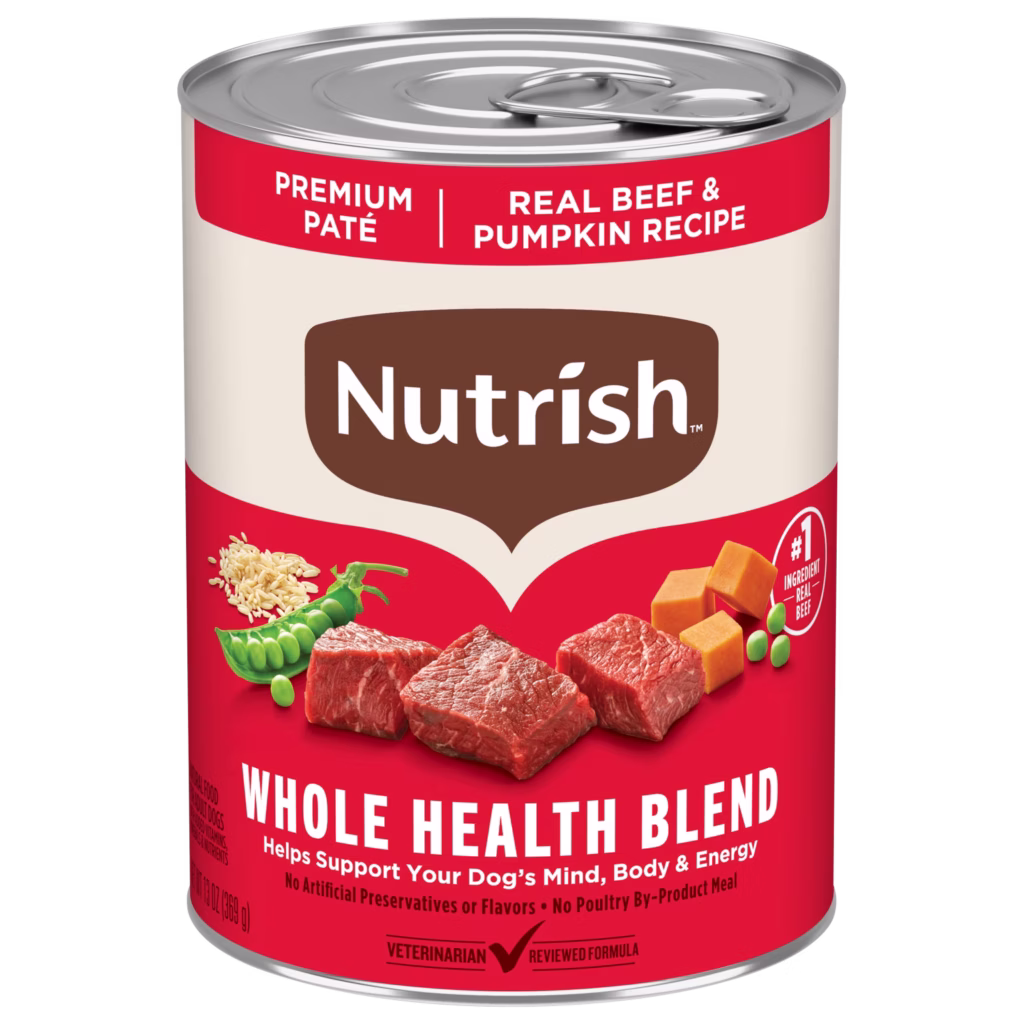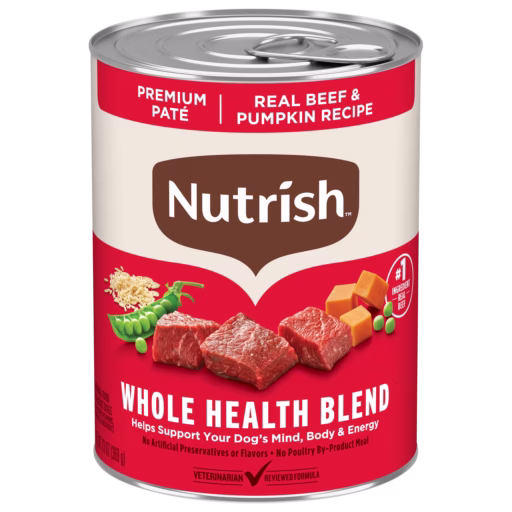 Nutrish™ Gentle Digestion and Whole Health Blend Premium Paté Variety Pack offers 3 delicious flavors of premium Paté dog food. All 3 recipes are made with real chicken or beef as the #1 ingredient combined with wholesome fruits and grains.